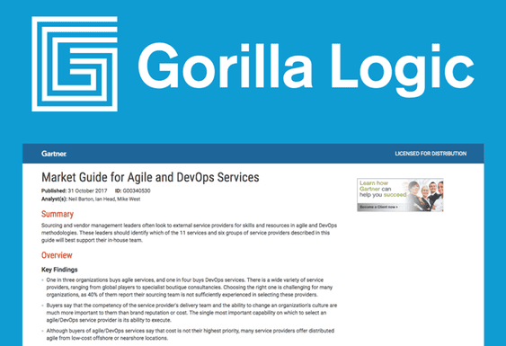 Gorilla Logic is Recognized in Gartner’s Market Guide for Agile and DevOps Services